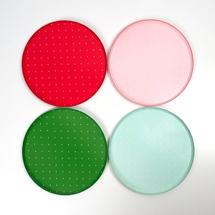 Multicolor Diamond Dinner Plates – Bring bold holiday magic to your table with these Multicolor Diamond Dinner Plates! Featuring a festive harlequin-style diamond pattern in blush pink, deep green, burgundy red, and mint, each plate is detailed with shimmering gold foil accents that catch the light beautifully. The rich yet playful palette makes these plates perfect for Christmas dinner parties, Nutcracker themes, gingerbread house nights, or any celebration that calls for extra sparkle. Perfect For: * Christmas dinner parties and brunches * Nutcracker or gingerbread-themed holiday events * Pastel-meets-traditional holiday decor * Glamorous or vintage-inspired Christmas tablescapes * Mixing and matching with solids, golds, or whimsical napkins Pair with our Merry Christmas Napkins, Cheerful Salad Plates, or Gold Foil Flatware for a complete and elevated seasonal setup. Serve your holiday meals with flair — shop now to make your table merry, bright, and beautifully bold! Keywords: harlequin Christmas plates, multicolor holiday dinnerware, gold foil party plates, nutcracker theme tableware, elegant Christmas paper plates, diamond pattern dinner plates, festive red green pink plates Multicolor Holiday Diamond Dinner Plates Pack of 8 Size 10.5“ SKU HOL25-DNP6