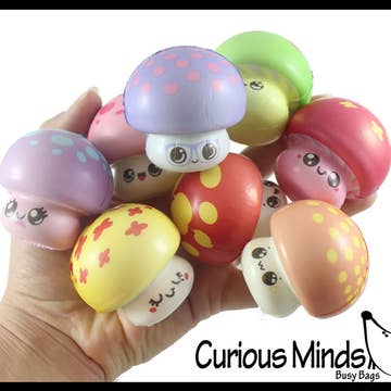 SET OF 1 RANDOM COLOR MUSHROOMS - These adorable mushroom food themed toys are made from the cool memory foam slow rise squishy material. They are super soft and squishes easily then slowly comes back to its shape. The squishy toys make perfect party favors or prizes Since it is a squeezy toy it makes a fun stress ball and helps build hand strength! Each squishy is individually wrapped. These are adorable micro mini sized. They are 2" tall x 2" and so cute! Random assortment of colors/styles. Fidgeting stimulates neural responses to produce an increase in blood circulation in the brain and extremities, so it can ease the symptoms of generalized anxiety disorder, ADD, ADHD, obsessive-compulsive disorder, dementia and autism.