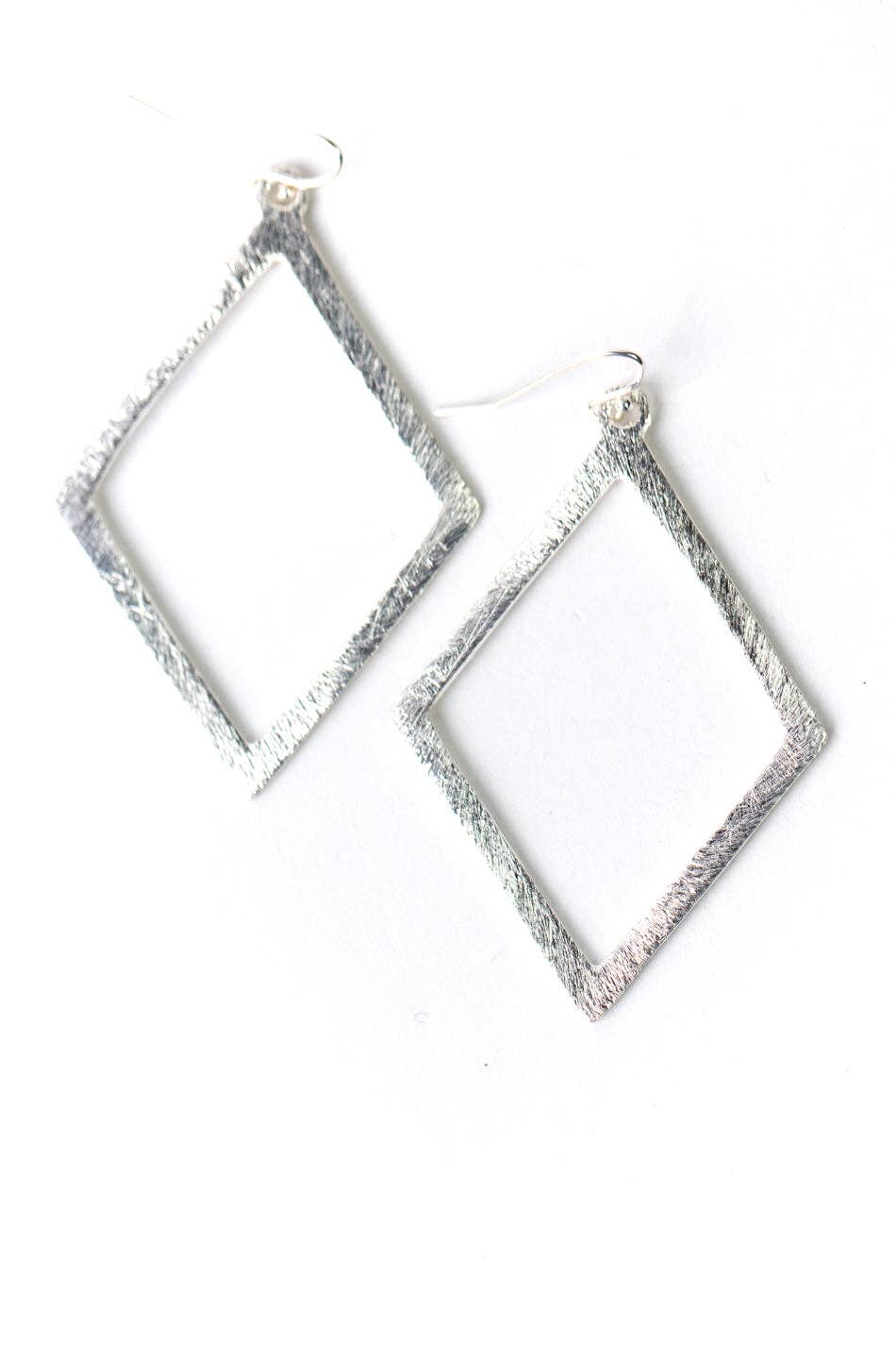 Double Diamond Chain Drop Earrings - Silver