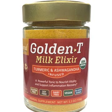 SKU: 810100921309 Made in United States Contains: Coconut Diet: Dairy-free, Organic, Soy-free, and Sugar-free Occasion Theme: Everyday Production: No artificial sweeteners and Non-GMO Season: Year-Round Shelf life: 12–24 months Storage: Shelf-stable Ingredients: Golden Milk Blend (Organic Turmeric Powder, Organic Coconut Milk Powder, Organic Medium Chain Triglycerides Oil, Organic Ashwagandha Root Powder, Organic Mushroom Blend (Reishi, Cordyceps, Chaga, Turkey Tail, Lion’s Mane, Maitake, Shiitake, King Trumpet), Organic Ginger Root Powder, Organic Cinnamon Powder, Organic Black Pepper Extract Product Language: English Weight: 90 g (3.17 oz) UPC: 810100921309 Product Materials: Organic Packaging: Recyclable