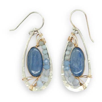 aaa grade blue kyanite, fresh water keshi pearl. length: 1-¾”.