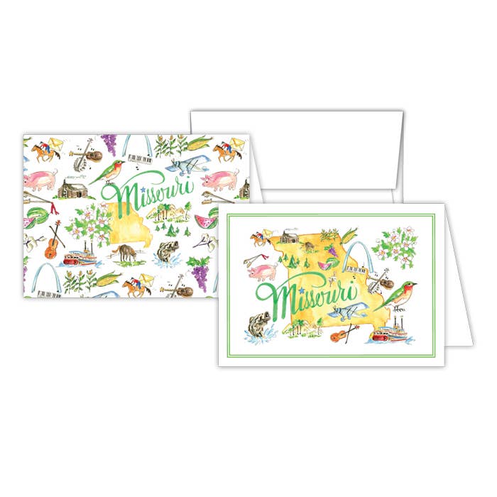 8 cards and envelopes. Blank Inside. Cello pack. Folded size: 4.25"" x 5.5"". Art by Gail Flores, SCCS. Proudly made in the U.S.A.