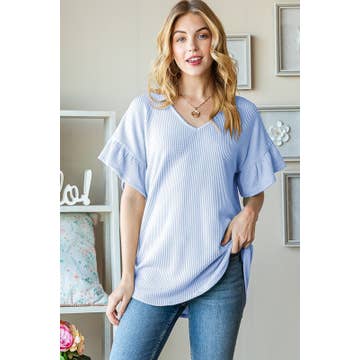 95% POLYESTER 5% SPANDEX TULIP SHORT SLEEVE ROUND NECK SOLID WAFFLE TOP WITH POMPOM LACE AND DOLPHIN HEM DETAIL MODEL SIZE: HEIGHT 5'7", BUST 32", WAIST 23", HIPS 34" WEARING SIZE: SMALL *The garment color may differ slightly upon arrival due to being taken with professional lighting also depending on what device you maybe using to shop*