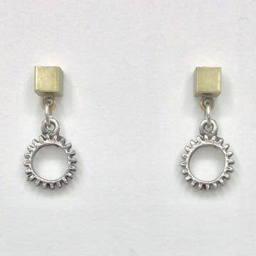 Tiny Gear Drop Post Earrings Mixed Metal - 3170