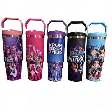 Huntrix | Saja Boys Are you ready to sip in style while battling the forces of evil? Meet the KPop Demon Hunters Tumbler, your new sidekick in hydration and demon-slaying! This 30oz powerhouse is laser engraved with the fierce elegance of the Saja Boys AND hUNTRIX, ensuring your drink stays as cool as your moves. Whether you're at a concert, on a quest, or just chilling with your favorite tunes, this tumbler is your ultimate companion. Get ready to unleash your inner hero with every sip! Features: * Capacity: Generous 30oz size to keep you hydrated throughout the day. * Material: Crafted from high-quality stainless steel for durability and a sleek appearance. * Insulation: Double-wall vacuum insulation maintains drink temperatures, keeping beverages hot or cold for extended periods. * Care: Easy to clean and designed for everyday use. * Comes in a box for easy gift wrapping. Precision laser engraving for a durable and elegant finish. 🔍✨ This is not a decal and cannot be removed from the tumbler. Please note that this is not the big brand name, this is a generic tumbler. This generic tumbler has unique features such as rainbow colors. Accessories and replacement lids, will fit just like the big brand name accessories Note to Buyers: Please note that each tumbler is individually crafted, and due to the nature of engraving, variations in engraving detail and color may occur. This adds a unique touch to each piece, making yours truly one-of-a-kind! 🌟✨ If you have any questions or specific requests, feel free to reach out. 🤝💬