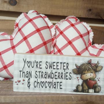 A wooden sitter from our Valentine's Day Collection cut in the shape of a love heart displaying a rustic inspired design with a fun love-themed sentiment that reads "The Only Way I Could Love You More Is If You Were Wrapped In Bacon." Sitter features distressed details and coordinating natural wood on sides and back. Our Wrapped In Bacon chunky sitter is designed to free-stand alone on flat surface. A love-themed gift perfect for an everyday home accent with a variety of display options.