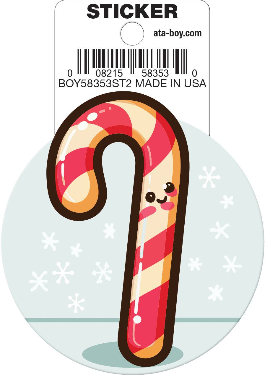 This Candy Cane Sticker is ready for the Holidays! It is a glitter sticker, that has a red iridescent sparkle in the red stripes of the candy cane. This sticker is ready to adorn presents, or be used in many ways during the holidays, to bring some holiday cheer. Glitter Sticker is 5 inches tall, by about 1 and 3/4 inches wide. It features Iridescent metallic glitter. It is a vinyl sticker, and is waterproof.