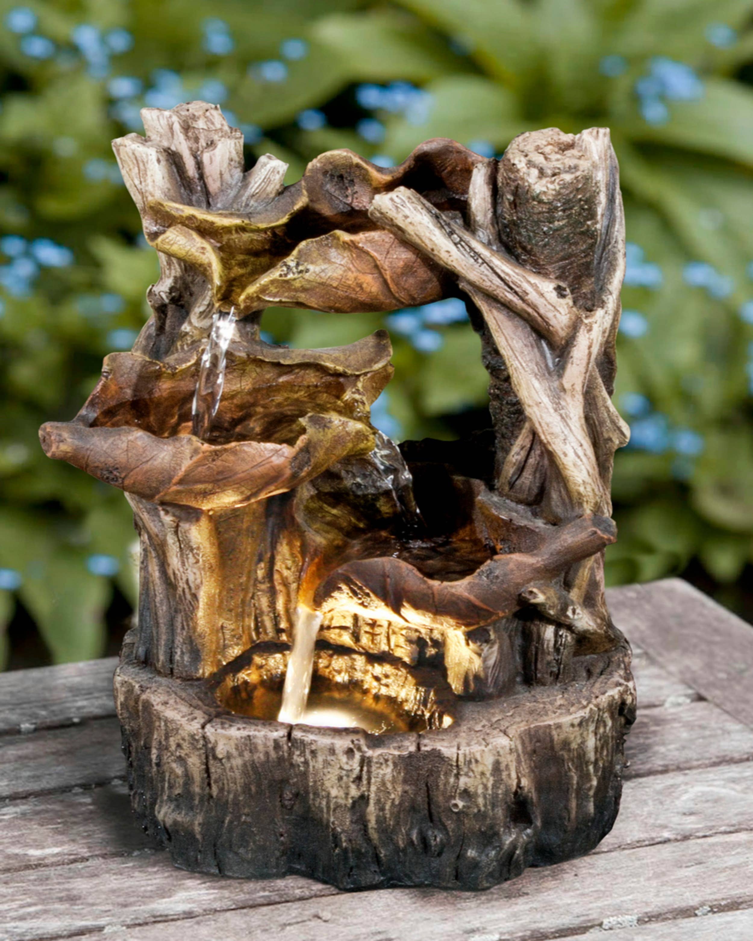 DIMENSIONS: measures approximately 25” in height x 10” in length x 15” in width DURABLE AND LONG LASTING: Water fountain is constructed from durable resin material and is rust and weather resistant ILLUMINATED: LED rolling ball provide a peaceful calming glow RELAXING: Cascading water flow creates calming sounds, while adding visual interest to your decor USE IN: Ideal for your home, garden, patio, porch, or yard Add a natural relaxing appeal to your home or garden with this water fountain. Composed out of durable resin that is rust and weather-resistant for long lasting use. In this fountain, water cascades down over natural looking gray stone creating a gorgeous waterfall centerpiece. LED rolling ball on top offers a peaceful calming glow. Relax to the water flow sound while adding peaceful ambiance to your outdoor setting.