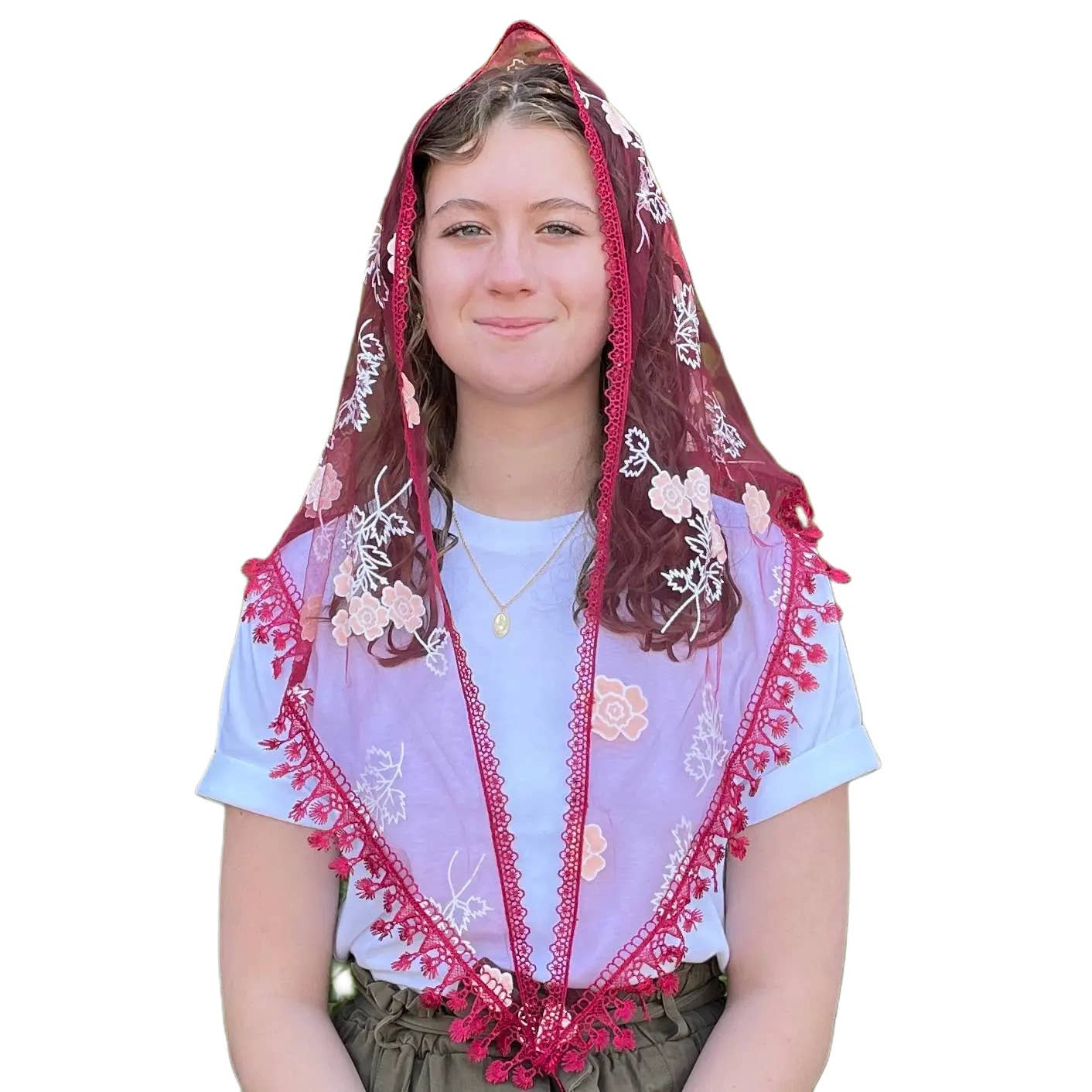 NEW LOWER PRICE! AVAILABLE WHILE SUPPLIES LAST BLACK lace material adorned with colorful large roses throughout and dangly motifs that enhance the attractive femininity on this veil. BOOST YOUR SALES by ADDING a VEIL DISPLAY to capture your customers attention to these beautifully made Veils. Giving your customers a full selection of colors and styles in the same category. OPTIONAL DISPLAYS: -Veil Display (SKU# 12-020) -16 Count POP (Point of Purchase) Display (This Display would include 2 veils of 8 colors) Ask your Sales Rep. for more details and extra savings @ (661) 695-7019 Veil Care Instructions: -Gently wash by hand -Lay flat to dry Measurements: 60″ x 22″ MOQ: 2