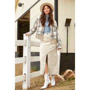 * Style No: JK8907-4 - Button down shirt jacket shacket - Cotton twill fabric with garment wash - Contrast ebroidery details on the edges - Oversized fit and long sleeves - 2 chest pockets - Model in black is 5' 8" 34-24-34 and wearing a Small Available By BLACK : 10/27/2023 KHAKI : 10/27/2023