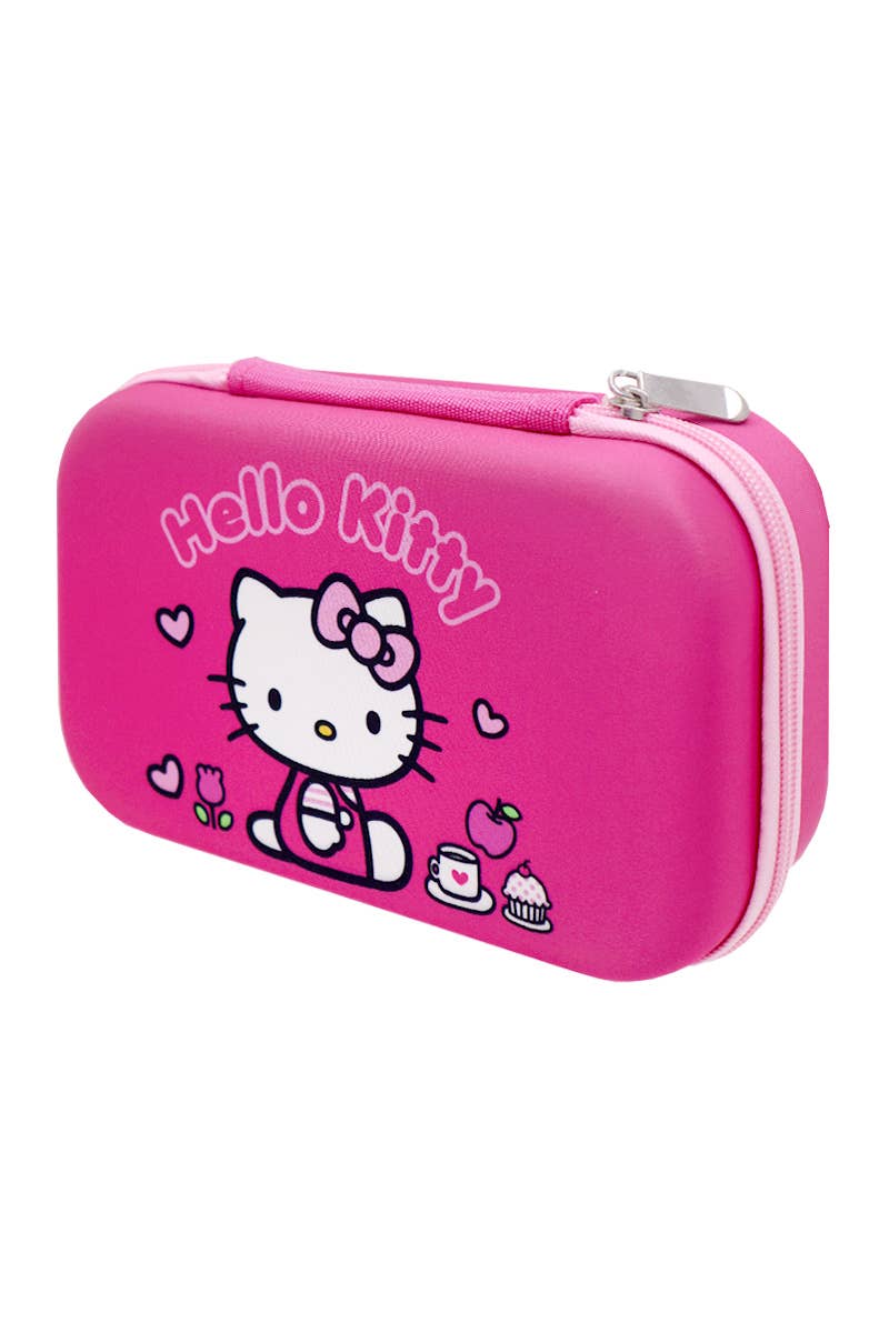 Travel back in time with this multifunctional pencil case, featuring adorable Hello Kitty and Friends artwork. With a built-in calculator, pencil sharpener, and dual compartments for extra storage, this case is as practical as it is cute. Each side holds up to five pens or pencils, plus erasers, paper clips, and more—keeping everything organized and in place with secure magnetic closures. It's the perfect blend of classic charm and everyday function! © 2025 SANRIO CO., LTD. Used Under License. • Features a built-in calculator, pencil sharpener, and Hello Kitty and Friends artwork • Comes with dual compartments—one on each side—for extra space and organization • Offers storage space for up to five pens or pencils in each compartment, plus erasers and paper clips, and more • Has secure magnet closures to keep items safe and in place 9""l × 3.25""w × 1.25""h 2 compartments to hold pencils, pens, and other writing utensils