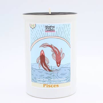 The Pisces zodiac sign is associated with creativity, intuition, and daydreaming. If you're looking for a soy wax candle that embodies these qualities, look no further than our Pisces Zodiac soy wax candle. This light and refreshing fragrance is perfect for relaxing and unwinding after a long day. Not only does this soy wax candle smell amazing, but it also features a beautiful Pisces-themed label. Whether you're a Pisces yourself or you know someone who is, this is the perfect candle for a Pisces. * SCENT NOTES - Top:Â Aloe, Lime, Cantaloupe; Middle: Bamboo, Green Leaves; Base: Moss, Chrysanthemum, Amber * CANDLE DETAILS: 9oz clear candle jar with white lid, with a jar size of 2.