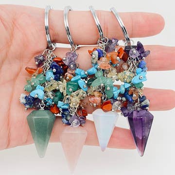 Category: Keychain Shape: Cone Pendant Material: Crystal, Natural Stone Length: 5cm Packing: Independent packing
