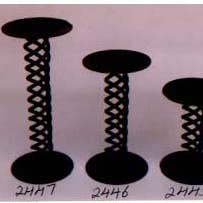 Spiraled black wire candle stand, holds one LED or standard taper. 4" tall with 3" base, candle cup is 1-1/4". Designed to hold Hearthside LED tapers, and tapers of a similar style. Candles with very thick or grungy wax coatings, such as Grungy LED Candlesticks, may be scratched or damaged if they are forced into holder.