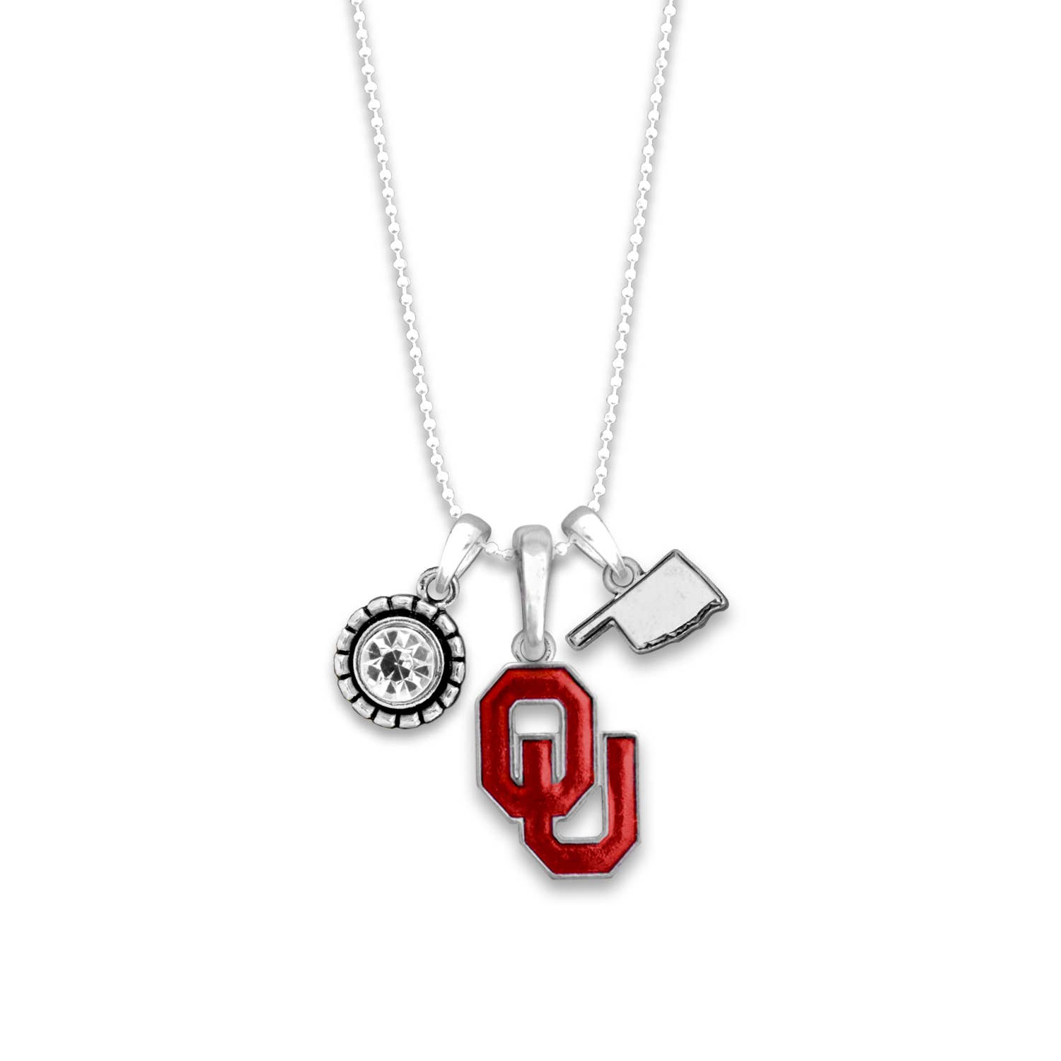 Nothing evokes those wonderful feelings of nostalgia more than your school and state. Whether you are an alumni living miles away or a kid with dreams of attending your University one day, our Home Sweet School college jewelry collection keeps your home and school close to your heart! The earrings feature a french hook style post. The necklace is an 18 inch cable chain with a two inch extender so you can customize your length. The bracelet is a cuff bracelet you can adjust to any size wrist. All items are made from zinc alloy and are sealed with a anti-tarnish coating. Each piece is designed and assembled by working moms and grandmothers at our production office just outside Tulsa, Oklahoma. Some components are Made in China then assembled proudly in the USA.