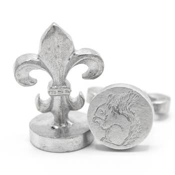Finally Available! Papier Plume exclusive wax seal collection. Interchangeable solid 1" diameter interchangeable coins come with solid wood handles: Moon & Stars Ocean Wave & Moon Quill & Ink Sealed With Love Merry Christmas Cat Alien Happy Birthday Cake Flowerpot Mardi Gras Mask Spider Rocket Ship Compass Crow Christmas Wreath Thank You ...and 3 different Fleur de Lis Crisp, clean laser cut designs that look even more stunning with our metallic highlight cremes. And don't miss our pretty personal initial seals A-Z!