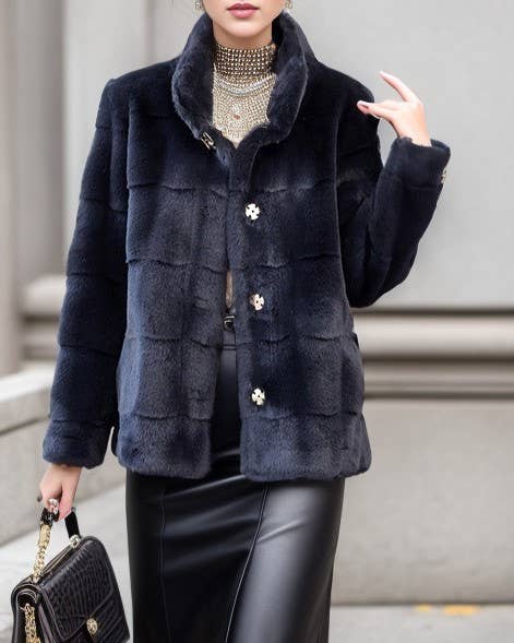 Wholesale CT074Y Elegant Mid-Length Faux Fur Coat with Fox Fur Collar