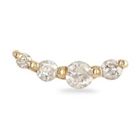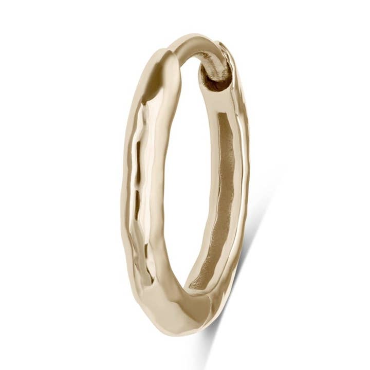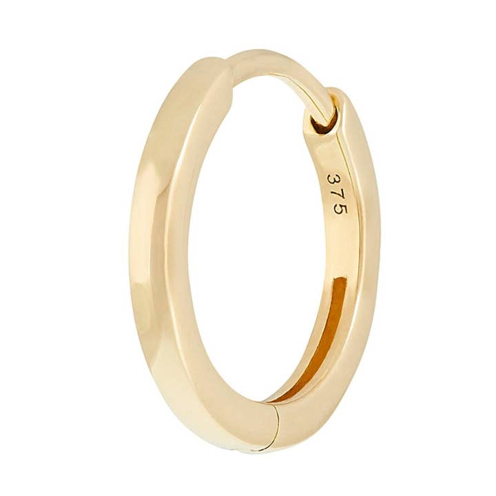 This Mini Diamond Eternity Seamless Hoop will luxe up any ear game! Perfect for a rook, tragus and helix piercing but also looks great in a high lobe. Made in solid 9 karat yellow gold it has sparkling white diamonds all around the hoop, giving that added luxe feel which is seen all around the ear. Diamonds are April's birthstone but also known to be a symbol of purity and absolute truth. The Diamond hoop measures 9.3mm outside edge to outside edge, with a 6mm internal diameter. The post width is 1mm or 18 gauge. They are really comfortable to wear and has a seamless design so no hassle to put on either. Diamond colour is HI, clarity SI and weight approx. 0.06 carats. Sold as a single Build up your curated ear with: - Aquamarine Boho Huggie - Diamond Star Flat Back Why we love 9k gold? You can keep in all day everyday even in the shower without affecting the appearance. This is the benefit of solid gold over plated.