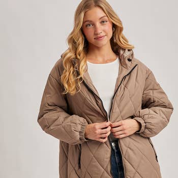 SKU : SSL2530. *** New Style *** Long Sleeve Hooded Padded Puffer Jacket - Inner Pockets & Adjustable Drawstrings - Side Pockets - Hooded & Full Zip Closure - Long Sleeve - Elastic Cuffs - Comes With A Compact Pouch For Easy Carry - Ultra lightweight 100% NYLON