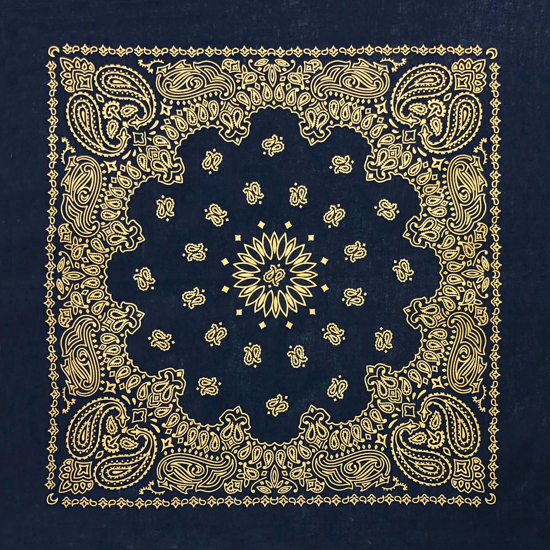 Metallic Paisleys 22" x 22" - Imported. 100% Cotton Same great paisley design, but with a touch of shine to make it one of a kind and uniquely different! This bandana gets noticed!