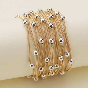 ACCENT: Charm (Learn About 18K Gold Ion Plated Stainless Steel) STYLE: Bracelet Stack MATERIAL: 1. Stainless Steel Rivet Bangle 2. Druzy Copper Base Bangle 3. Howlite And Lava Beaded 4. Milky Quartz And Lava Beaded 5. Hair-Quartz Chips Beads HYPOALLERGENIC: Yes (Sensitive Skin Friendly) SIZE: 6.25 - 7.25 Inch Circumference JEWELRY CARE: Learn More