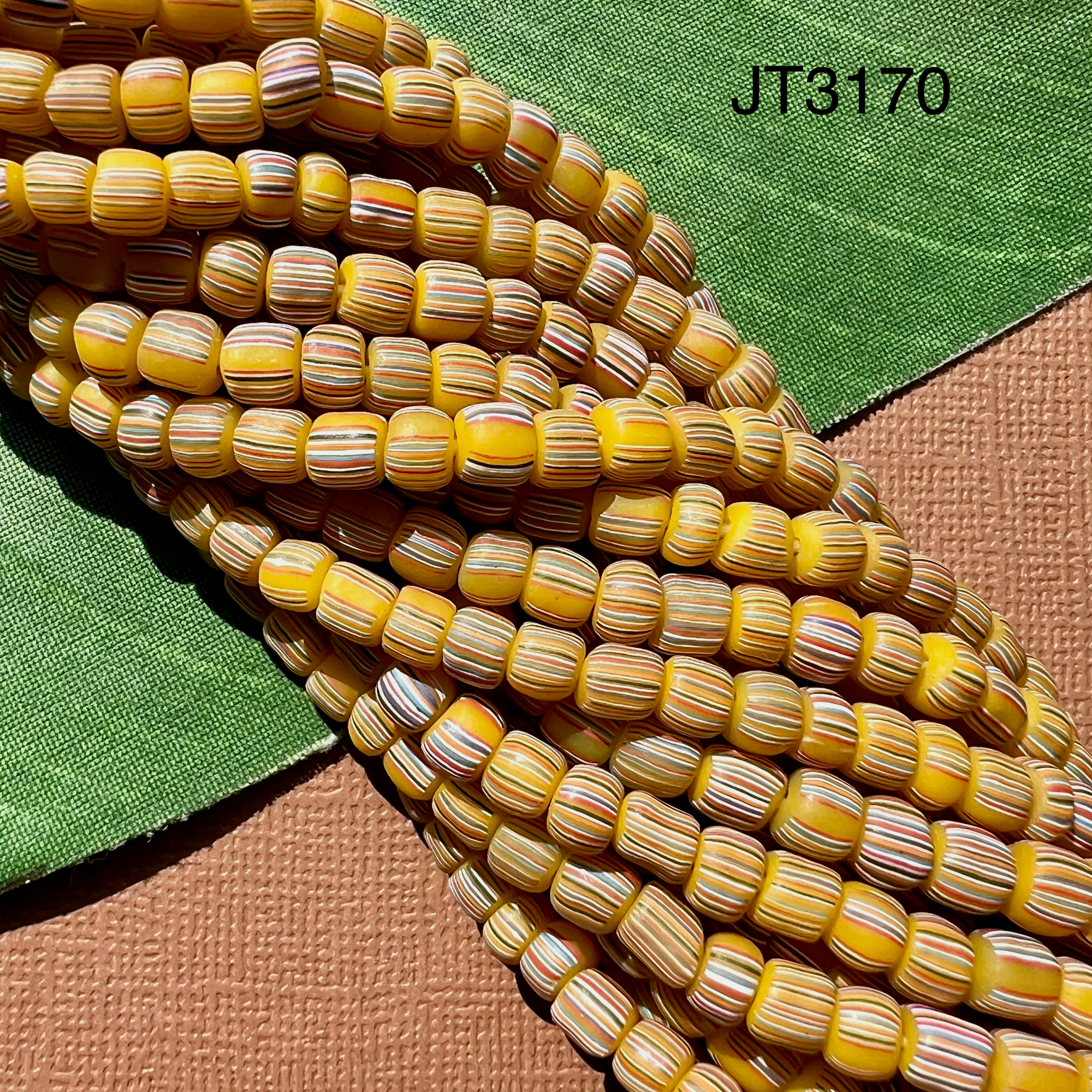 Indonesian Glass Beads - Teal Striped, 5 Strands