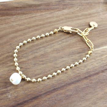 Wrap your wrist in luxury with our Freshwater Pearl Bracelet. Handmade in Texas, each bracelet boasts genuine freshwater pearls paired with a chic matte gold coin. Elevate your style and sophistication with this distinctly elegant accessory. * Stretch Beaded Bracelet * Genuine freshwater pearls. * Accented with a matte gold coin. * Pair with the matching necklace and earrings * Made in the USA * Although your bracelet will resemble the photo, each piece is created by hand, so no two are identical.
