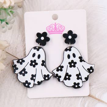 Fall and Halloween Jewelry Pumpkin and Ghost Design Funny style Handmade Clay material Earring size 1.8CM * 4CM