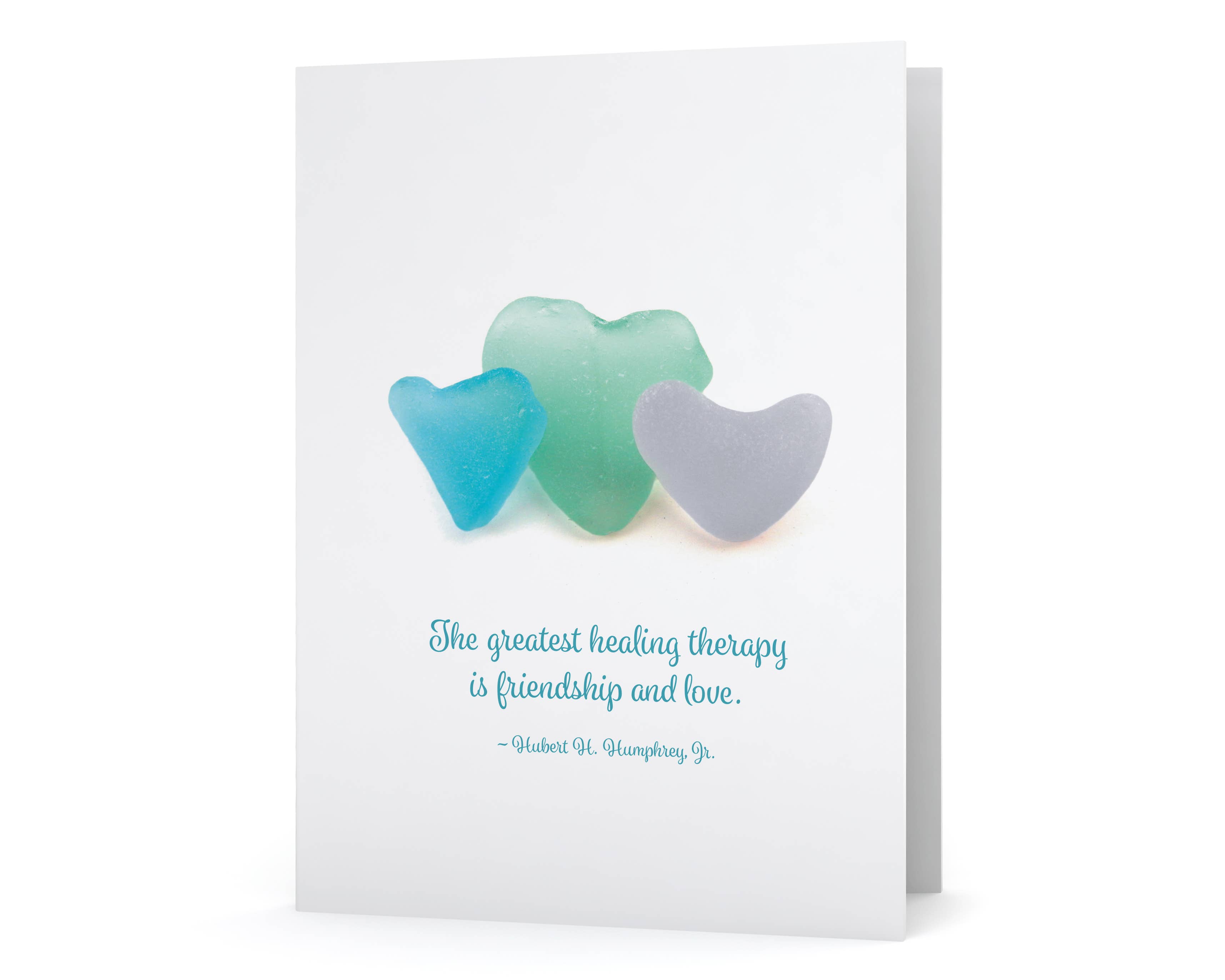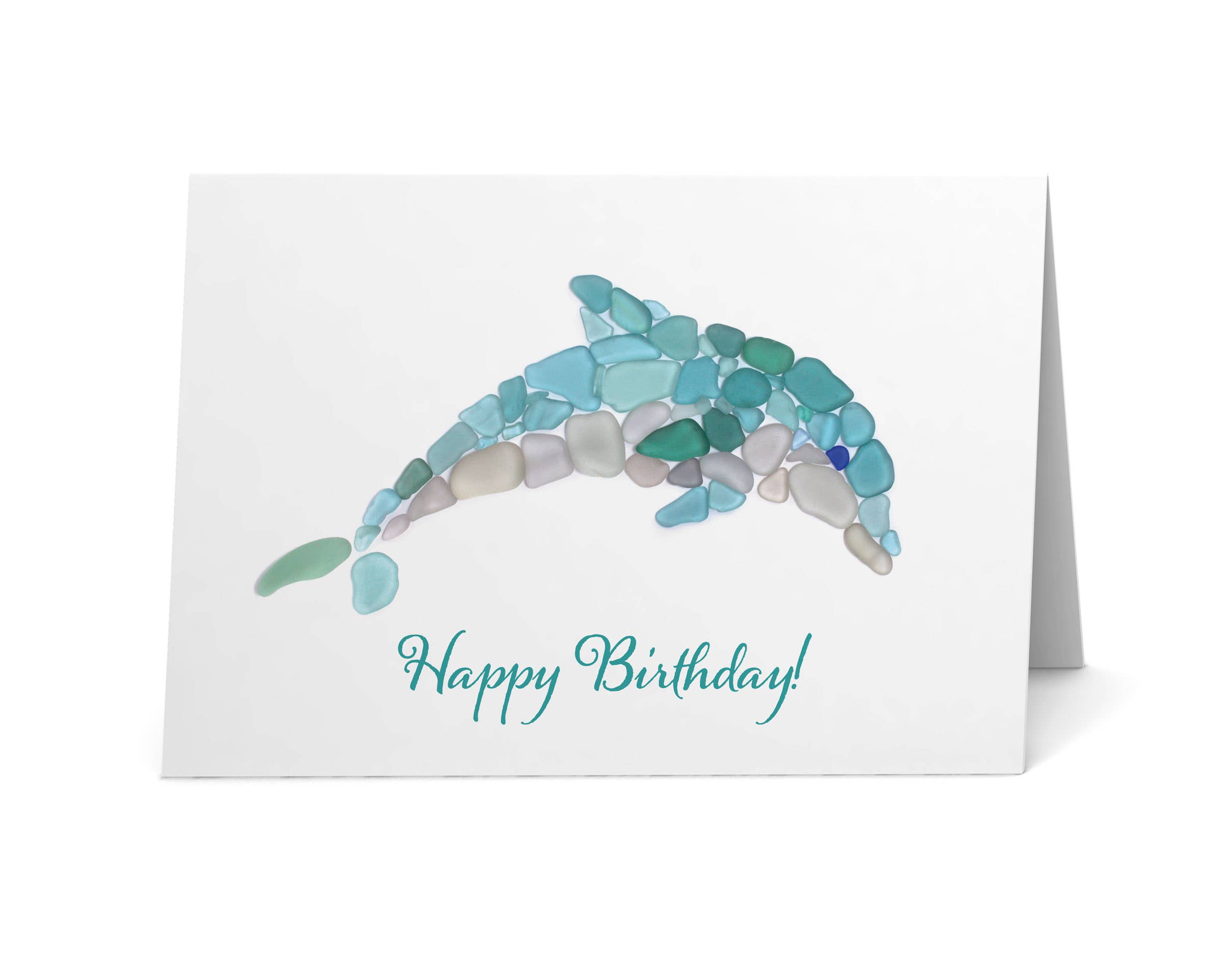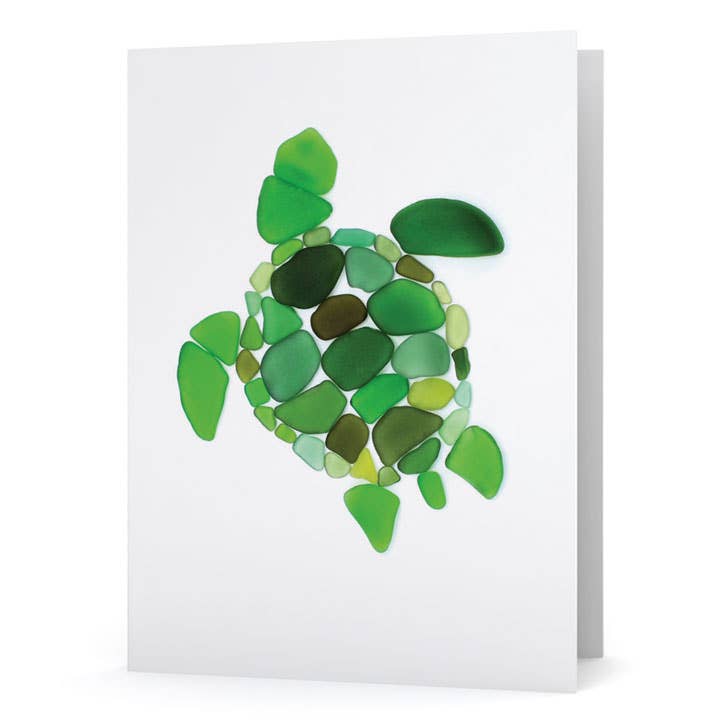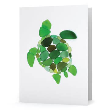 This sea glass art design on this greeting card was created with surf-tumbled pieces of beach glass. Quote reads: "In waves of change we find our true direction." The mosaic was photographed and is printed on matte, heavyweight, bright white card stock. Blank inside. Each card is individually packaged with a color-coordinated envelope in a clear, protective sleeve. Note: The high-quality print looks real, but it is not actual sea glass.