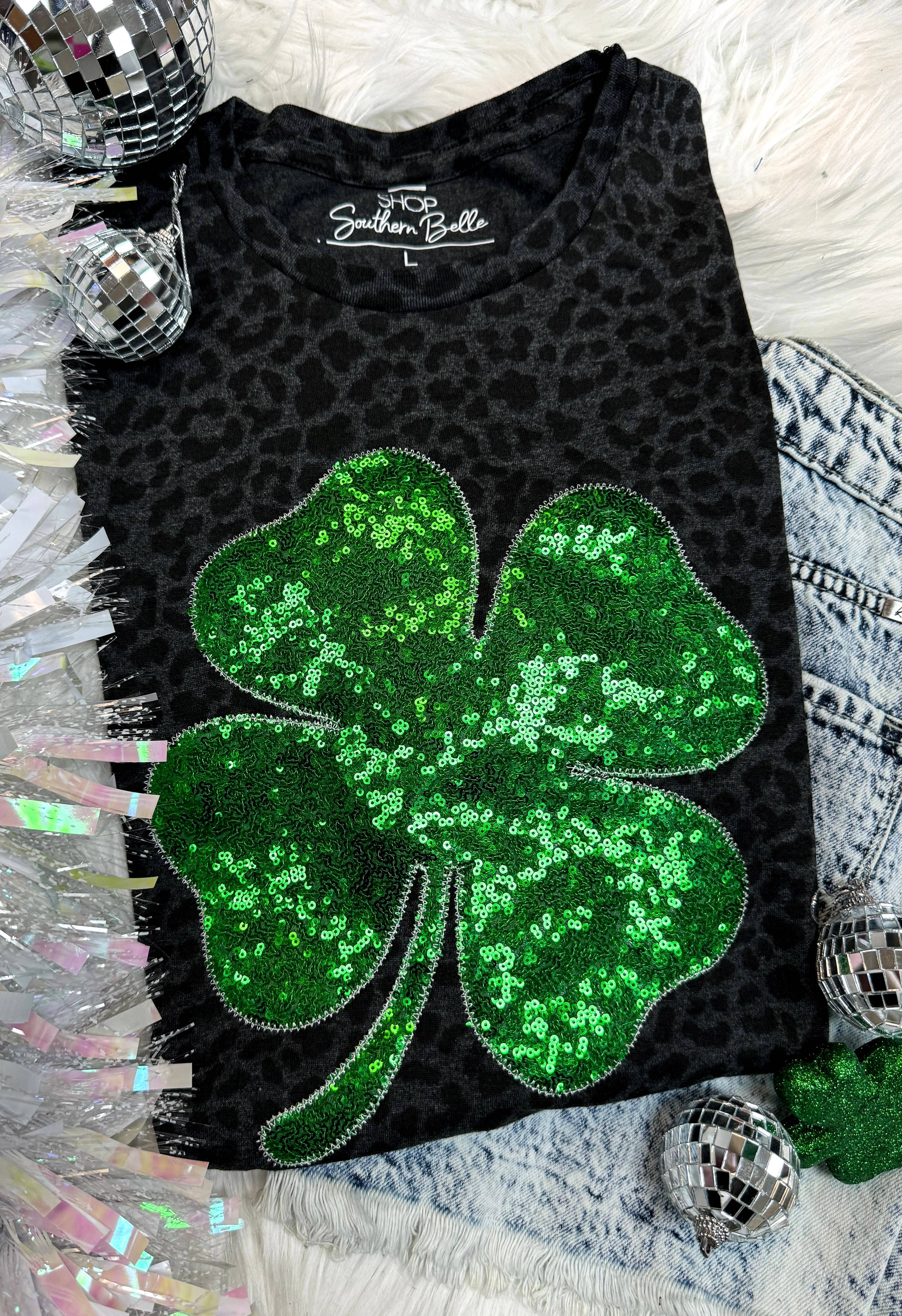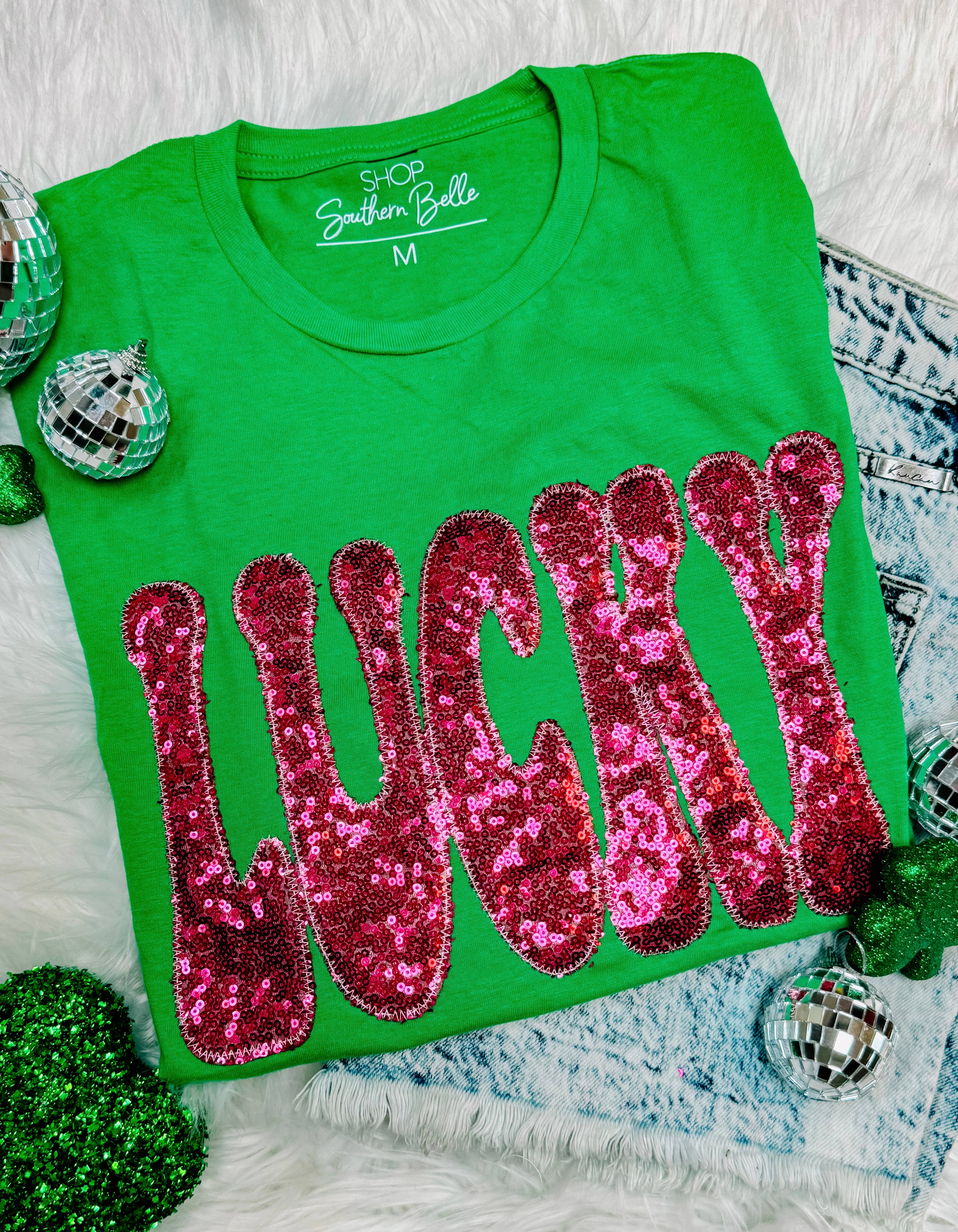 Celebrate St Pat in style with our handmade embroidery applique designs -- crafted with care and attention to detail for that perfect festive touch. Each piece is design in-house and features premium fabrics, cheerful St Pat inspired motifs, and intricate stitching that adds a cozy handmade charm to every garment. Perfect for seasonal collections, boutique displays, or gifting, these designs bring a playful and elevated look to your lineup! - Real Sequins - Gildan SoftStyle shirt