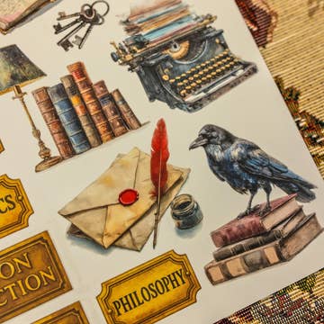 Black Ink Raven Reading a Book Sticker - 3"