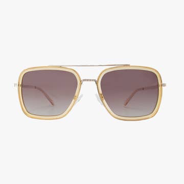 These square sunglasses feature a transparent polycarbonate frame in a warm light amber tone, paired with brown lenses for a soft, sun-washed look. The clean square shape balances structure and ease, making this style versatile and approachable. Designed with lightweight construction and balanced proportions, this frame works well as a core warm-neutral option within curated eyewear assortments. Key Features Square silhouette Transparent polycarbonate frame Solid brown lenses Lightweight construction Comfortable for everyday wear 100% UV400 protection Style Details Frame Shape: Square Frame Color: Light Amber Lens Color: Brown Material: Polycarbonate Gender: Women / Unisex Style Direction: Warm / Clean / Everyday Why Buyers Like It Warm transparent color offers an alternative to clear and beige Square shape delivers consistent commercial appeal Easy to style across seasons Strong core style for fashion, lifestyle, and resort boutiques