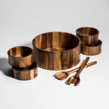 Wholesale Large Acacia Wood Serving/Salad Bowl with Utensils – 10"