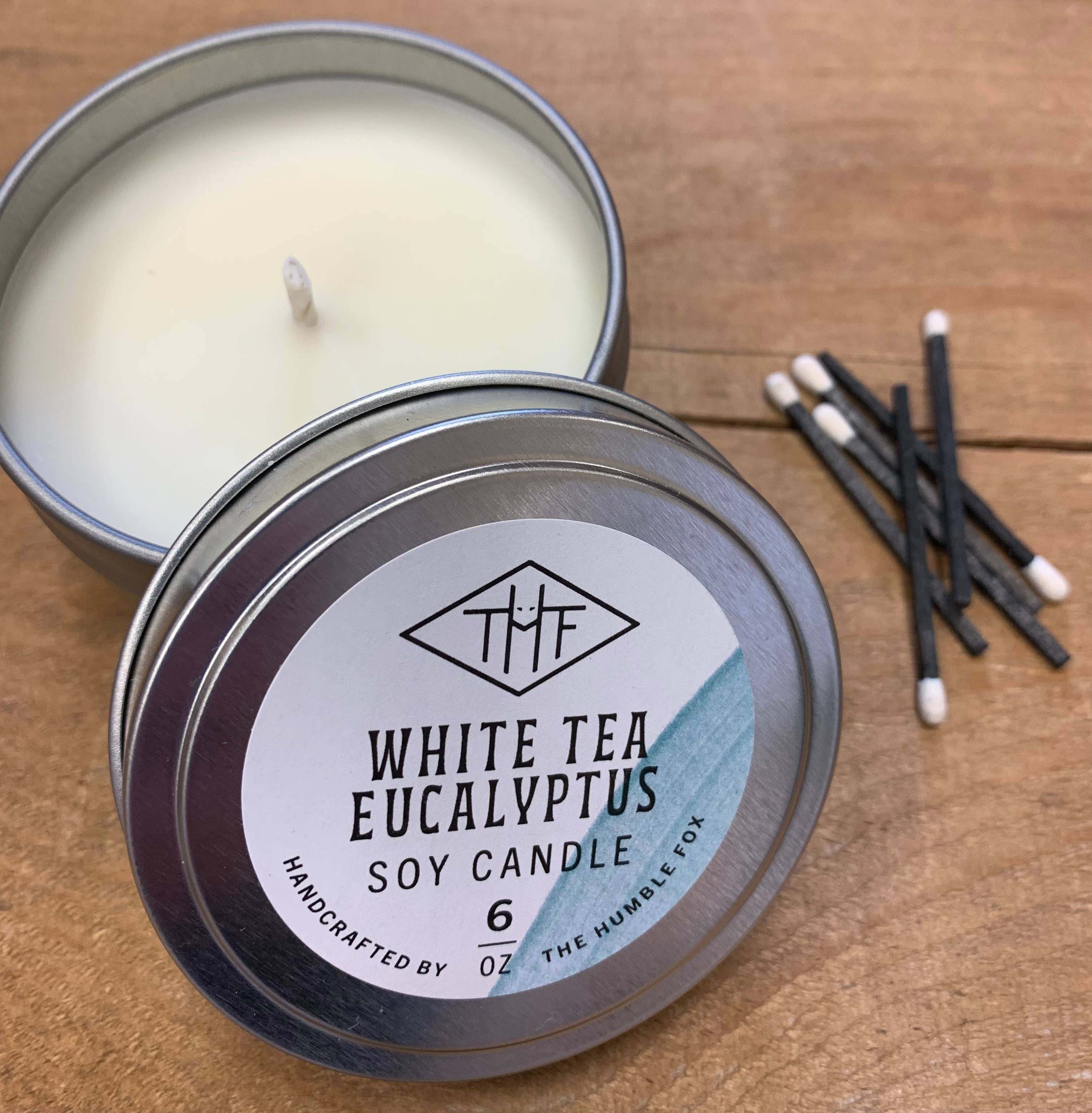 A blend of eucalyptus, bergamot, jasmine, thyme, and white tea. Made with 100% soy wax, non-toxic fragrances, and cotton wicks. Approx. burn time is 15-18 hours.