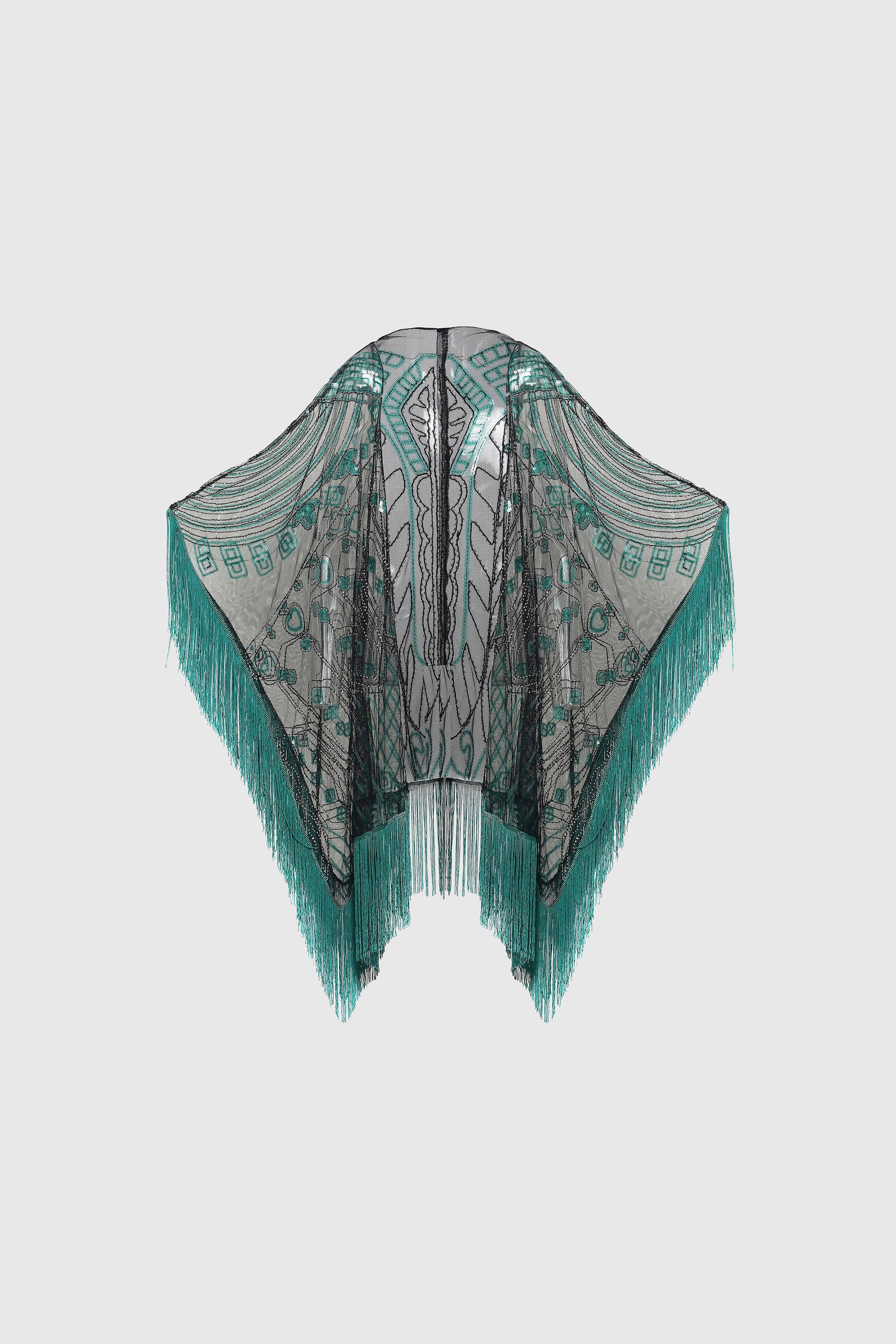 The delicate fringe adds a playful yet refined touch, swaying with elegance. This shawl effortlessly transforms any outfit, perfect for adding a touch of glamour to evening wear or as a statement piece for special occasions. Features: * Dazzling crystal embellishment * Delicately arranged beads design * Swaying fringes * High quality polyester fabric
