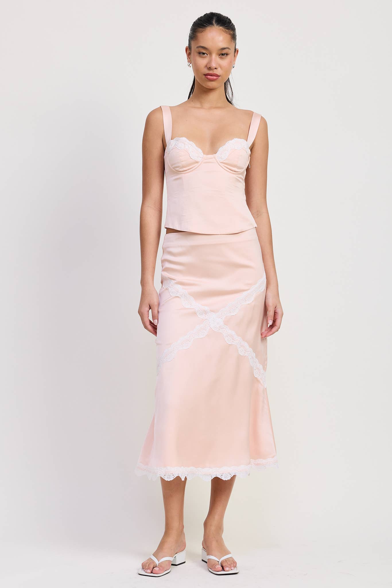 Ts2508 Satin Midi Slip Skirt W/ Side Zipper
