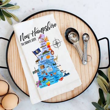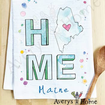 Our pretty Maine state tea towel is a wonderful housewarming gift that adds some personality to your kitchen! We love this tea towel as a practical gift for every season (and it's fun for Mother's Day gifting!) We can create this state tea towel with your custom state and city location! These thick waffle knit towels are designed & sublimation printed in our home studio by a crafty mama. Whether you're wiping down counters, drying dishes, or simply adding a decorative touch to your kitchen, this tea towel is the perfect choice. The waffle knit material is absorbent and quick-drying, making it easy to clean up spills and messes. The tea towel is also machine-washable, so it stays fresh and clean even after multiple uses. - Approximately 16"x 24" in size - 100% Polyester Towel with sublimation design - Machine wash cold/tumble dry low