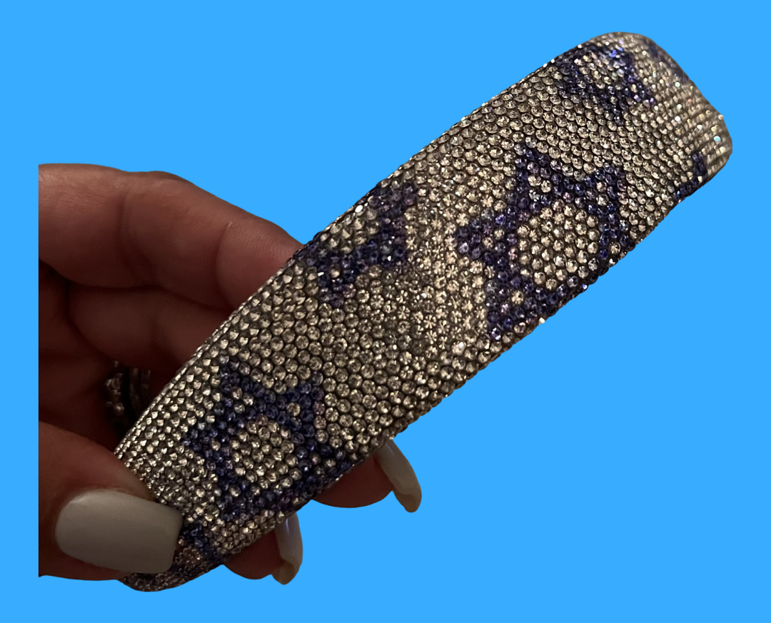 1 Inch wide satin headband featuring an embroidered sparkling star of David applique.  Fits ages 3 years +.  The inside of the headband features a suede lining for a no slip hold.