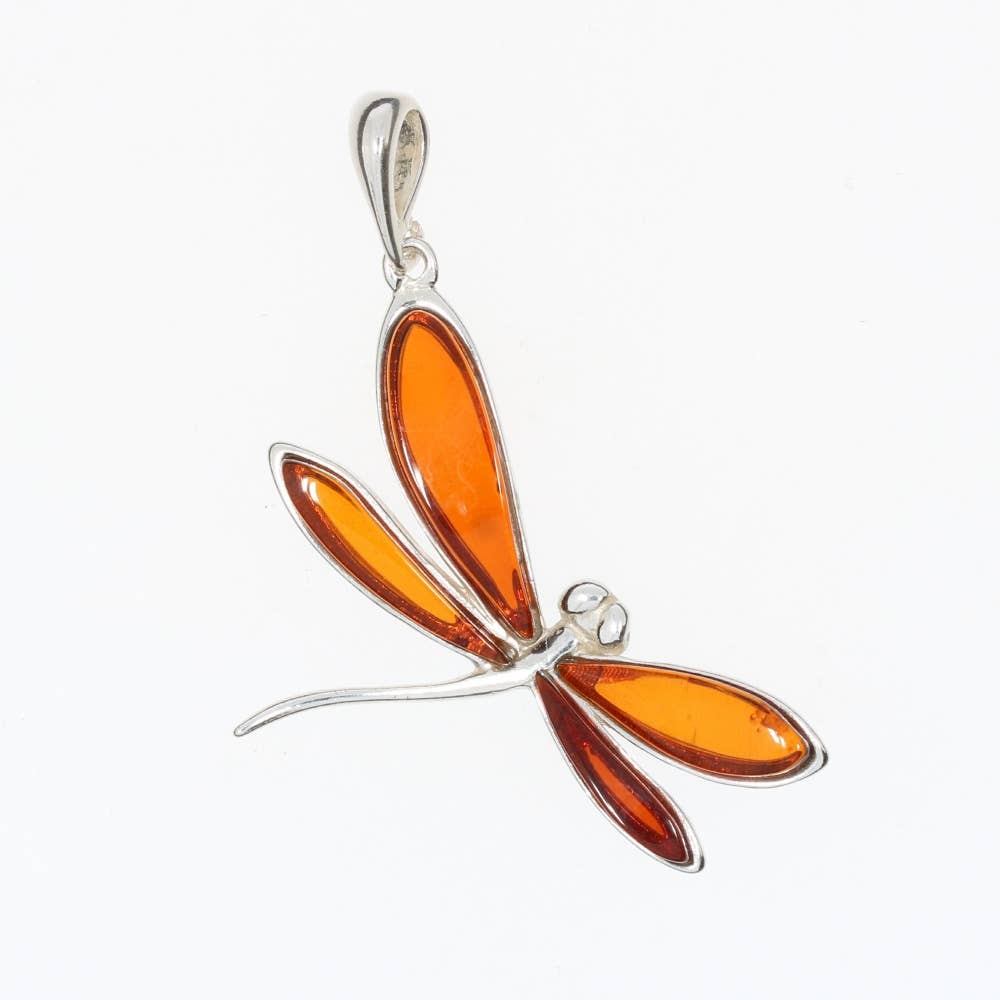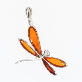 DRAGONFLY Amber pendant necklace 1.25"