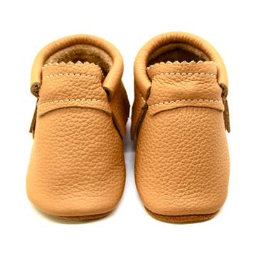 Boot Moccs was created by two Montana Moms with an affinity for western fashion and the Ranch way of life! Knowing how hard it is to fit those chubby little feet into boots, Boot Moccs was designed to solve that problem! Made of genuine leather that is extremely soft, comfortable, and durable, Boot Moccs are a high-quality moccasin with an added custom vamp stitching to mimic a cowboy boot!! They are available in four versatile colors that have a soft sole in size 2 & 3 then transition to a mini-walker sole in size 4 & 5. Each mocc comes with its own custom-designed boot mocc box. Sizes 4-5 will all have mini soles. Size: 2 (0-6M) Up to 4.25”. Size: 3 (6-12M) Up to 4.75”. Size: 4 (12-18M) Up to 5”. Size: 5 (18-24M) Up to 5.25”.