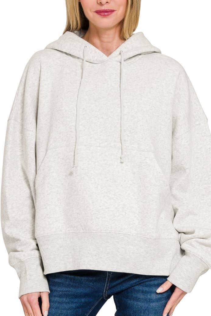 - 8 oz., 32 singles - 52% Airlume combed and ring-spun cotton, 48% polyester fleece - Athletic Heather 90% Airlume combed and ring-spun cotton, 10% poly fleece - Semi set-in sleeves - Drawcord-free design - Versatile, mid-length silhouette - Tear away label Bella + Canvas Ladies' Classic Pullover Hooded Sweatshirt 7519