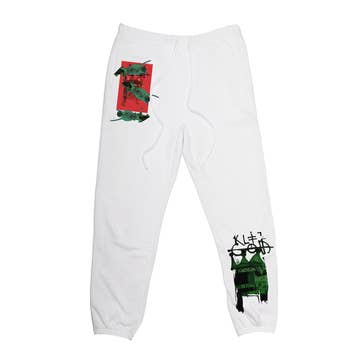 This winter white open-hem sweatpants is the perfect throw-on for a cool, relaxed look. This sweatpants features printed scribble elements on both legs and an oversized "Cult" graphic down the front of the right leg. Finishing touches include a raw hem, a small embroidered patch Shimuchan logo on the front, cream label with our brand mantra on the back waistband, and embroidered "XX" on the back leg. Pair these sweats with our matching crewneck sweatshirt for the perfect outfit to rock lounging around the house or out on the streets. - 2 Zippered pockets, 1 Back pocket - Draw string - Matching apparel available
