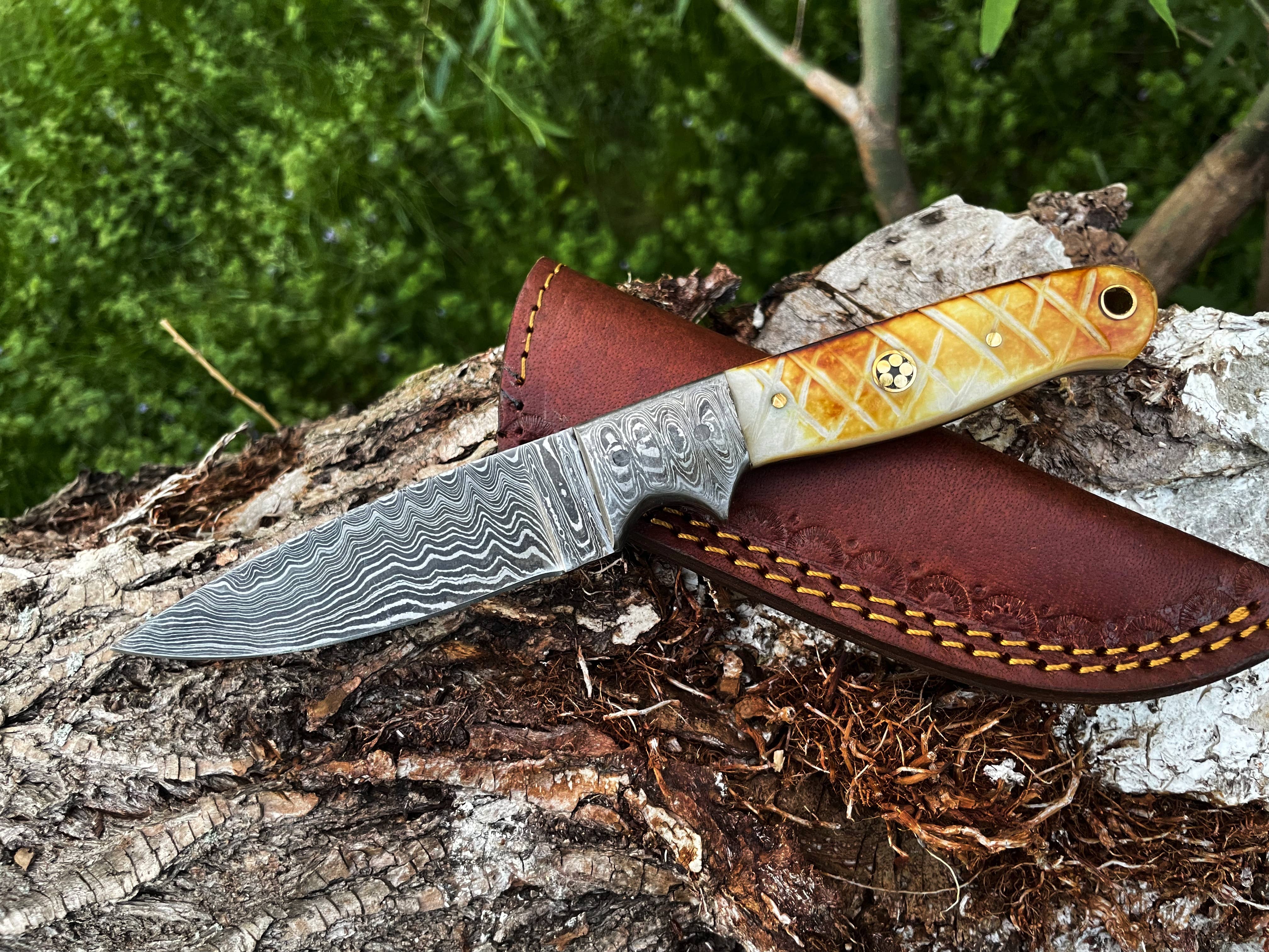 Material: Knife: stainless steel, length 40mm Handle: brass + wood, length 45mm Cover: PU leather The knife is very sharp and has a keychain, making it suitable for carrying around and self-defense use
