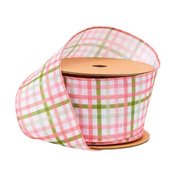 This 2 1/2 inch wide by 20 yard roll of ribbon with a jumbo woven check will add a touch of rustic charm to home decor projects and wrapped packages. The wire edge allows you to bend and shape your creations and decorate with ease. 20 Yard Bulk Ribbon Roll. Fabric Content: 100% Polyester This ribbon is wired.