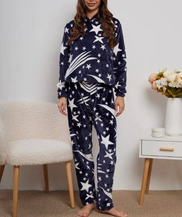 *** SET TOP & PANTS *** Star Print Long Sleeve Hoodie Shirt High Waist Jogger Pants 87%POLY/10%RAYON/3%SPAN * Model Info: Height: 5_8'' Bust: 34B Waist 24 Hips 34