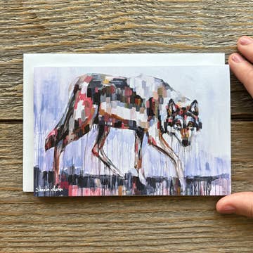 Digitally printed A1 (3.5" x 4.875") greeting cards featuring linocut print of a fox skull including teeth and mandibles. Cards are blank on the inside and include matching envelope.