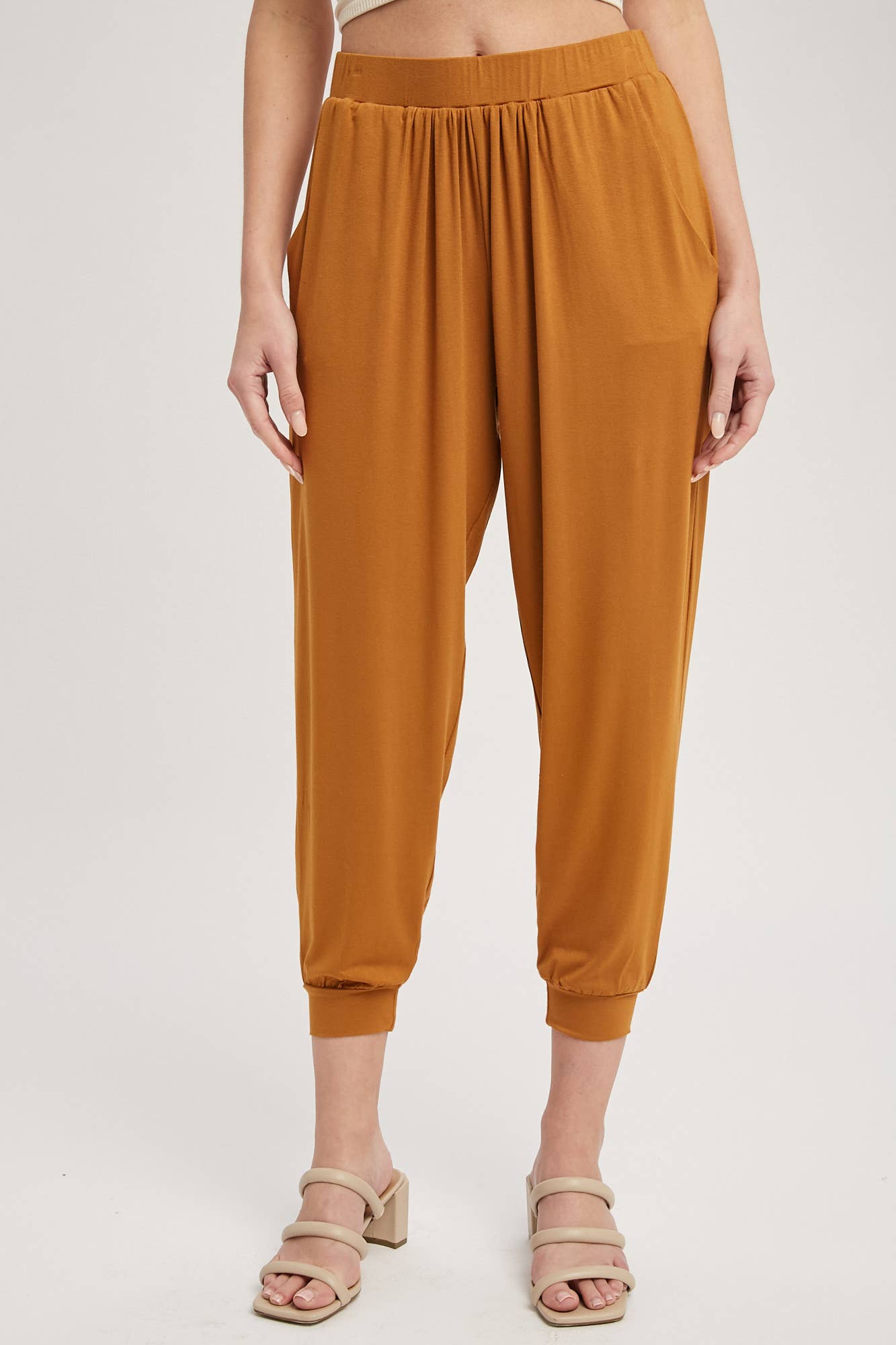 SATIN DRAWSTRING ANKLE HEM CARGO PANTS