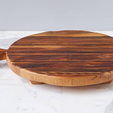 Our Host Delight Chillable Serving Platter is a versatile and eco-friendly piece crafted from reclaimed granite. Its unique, chiseled edge and smooth beach stone handles make it both stylish and functional. Keep your food cool and impress your guests with this exceptional serving platter. Key Features: • Eco-friendly: Made from recycled materials. • Versatile: Perfect for serving a variety of foods. • Temperature-maintaining: Keeps your food cool thanks to granite's natural properties. • Durable: Built to last with high-quality materials. • Stylish design: The chiseled edge and natural stone handles add a touch of elegance to your table. • Includes a wooden serving knife: A complete serving solution. • Handmade Excellence: One of a kind, carefully designed and artisan handcrafted in our New Hampshire studio. • Guarantee: Lifetime material and workmanship guarantee. Stone, granite, and hardwood colors and textures will vary naturally. • Optional Lazy Susan available Dimensions: 16" x 10" x 1.25”