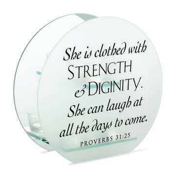 Unique tealight holder glows with beauty and inspiration. Glass squares are frosted outside, mirrored inside to enhance the soft light shining from the included LED tealight on center shelf. Front glass square is decorated with the Serenity Prayer. Size is 4" wide x 4" high x 2.4" deep. Text of prayer: God grant me the serenity to accept the things I cannot change; courage to change the things I can; & wisdom to know the difference.