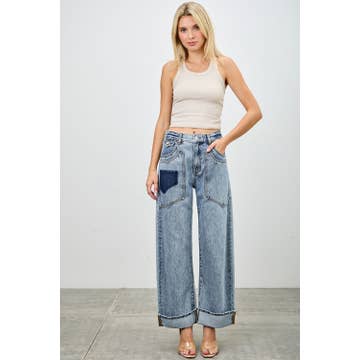 DENIM WIDE LEG FLARED PANTS -Elastic Waistband in the Back -Wide leg -Pleat detail in the front -2 Side Hip Pockets FABRIC 70%COTTON 27%POLYESTER 3%SPANDEX MADE IN CHINA SIZE PREPACK S-M-L-XL (2:2:2:2) 1X-2X-3X (2:2:2)